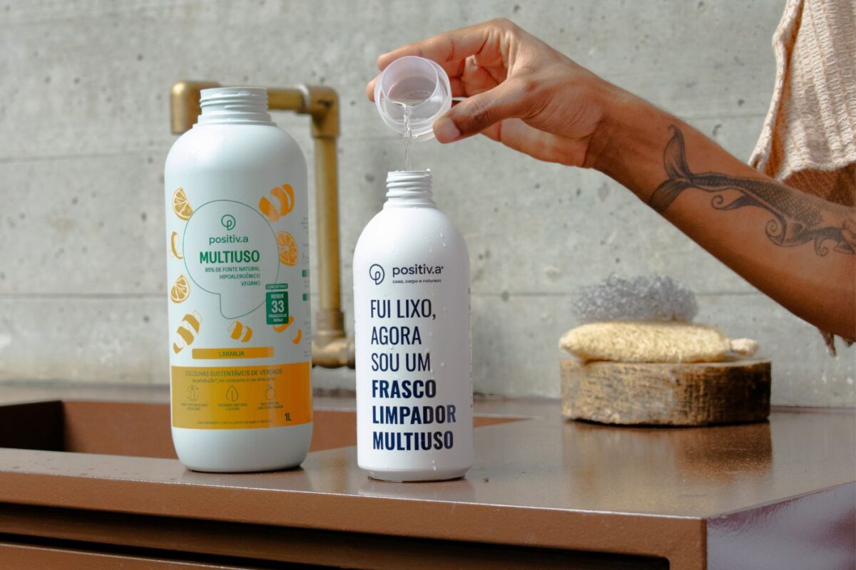 Às vezes abrimos nosso armário de produtos de limpeza e surge aquela dúvida de qual produto usar, onde vai cada um deles e ficamos carregando o balde e todos os produtos pra lá e pra cá. Mas e se existisse uma forma de simplificar tudo usando menos produtos, menos espaço, menos química agressiva, mais praticidade e o mesmo (ou melhor) resultado de limpeza? Essa é a proposta do Multiuso Concentrado positiv.a. Com fórmulas feitas à base de plantas, biodegradáveis, sem petroquímicos e com fragrâncias naturais (Laranja 🍊 ou Capim-Limão 🍃), ele é um verdadeiro coringa da limpeza: substitui até 10 produtos diferentes sem perder desempenho. A seguir, você vai ver como isso funciona na prática! O que é o Multiuso Concentrado? Antes de pensar em “tudo que ele substitui”, vale entender o que faz esse produto ser tão versátil: Base vegetal e biodegradável: limpa sem agredir superfícies nem pessoas. Sem petroquímicos, sem corantes e sem fragrâncias artificiais: ideal para quem tem pele sensível e quer uma casa mais saudável. Rende muito: 1 litro do concentrado diluído rende dezenas de litros de solução pronta para limpar. Ele está disponível em duas versões com aroma natural: Laranja, com toque cítrico refrescante, e Capim-Limão, com aroma leve e herbal. O que o Multiuso Concentrado pode substituir Limpador de bancadas Use o Multiuso diluído em água para limpar as bancadas da cozinha e do banheiro com rapidez. Desengordurante de fogão Em vez de um desengordurante específico, uma solução mais forte de Multiuso ajuda a dissolver gordura sem precisar recorrer a químicos agressivos. Limpador de vidros e espelhos Quando diluído na proporção certa e aplicado com um pano limpo, ele remove marcas e imprime brilho sem deixar película. Lustra móveis natural Quer dar aquele toque final em superfícies de madeira tratada? Uma solução suave de multiuso com pano macio remove a poeira e realça o brilho. Limpeza de pisos Desde cerâmica até porcelanato e vinílico, o multiuso se adapta para limpar sem resíduo pegajoso (basta ajustar a diluição). Box do banheiro e azulejos Sem necessidade de um produto específico para vidro do box: a solução pronta do multiuso ajuda a retirar respingos e sujeira leve. Pias e superfícies inox Remove marcas de água e respingos sem agredir o acabamento. Limpeza de áreas de pets Remova resíduos leves de patas, caminhas e comedouros com uma solução suave, sem fragrâncias agressivas. Como usar o Multiuso Concentrado com eficácia Diluição leve (limpeza do dia a dia): Coloque 1 tampinha para cada 500 ml de água. Essa proporção funciona para limpeza leve de eletrônicos, vasos, lousas, materiais de yoga, superfícies delicadas e manutenção diária da casa. 💡 Vai usar balde? É só manter a lógica: se para 500 ml usamos 1 tampinha, para 2 litros de água, use 4 tampinhas. Diluição média (limpeza geral): Aumente um pouco a concentração (ex: 2 tampinhas / 500 ml). Ideal para pisos, móveis, portas, paredes, pedras e eletrodomésticos. Diluição forte (sujeira pesada): Use 3 tampinhas ou mais, dependendo da superfície e da sujidade. Indicada para sanitários, pias, fogão, geladeira, carpetes, madeira tratada, inox, tapetes e até para ajudar na limpeza de urina de animais. Dica positiv.a: sempre teste a solução em uma parte discreta da superfície antes de aplicar amplamente. Limpeza mais consciente é limpeza mais simples Ao substituir vários produtos específicos por um multiuso concentrado, você: 🌱 economiza espaço no armário 🌱 reduz o número de embalagens descartadas 🌱 evita misturas perigosas entre produtos diferentes 🌱 diminui o uso de ingredientes agressivos no seu lar 🌱 tem menos química no ar e nas superfícies 🌱 ainda cuida da pele sensível e da saúde da família Ou seja, menos produtos não significa menos limpeza, significa limpeza mais inteligente e consciente.