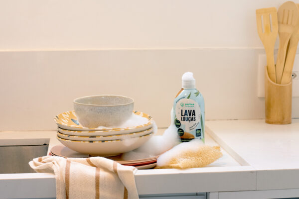 Detergentes tradicionais costumam ter fragrâncias sintéticas, corantes artificiais e ingredientes petroquímicos que podem irritar a pele e deixar resíduos nos utensílios. E apesar de funcionarem, eles não precisam ser agressivos para cumprir seu papel.